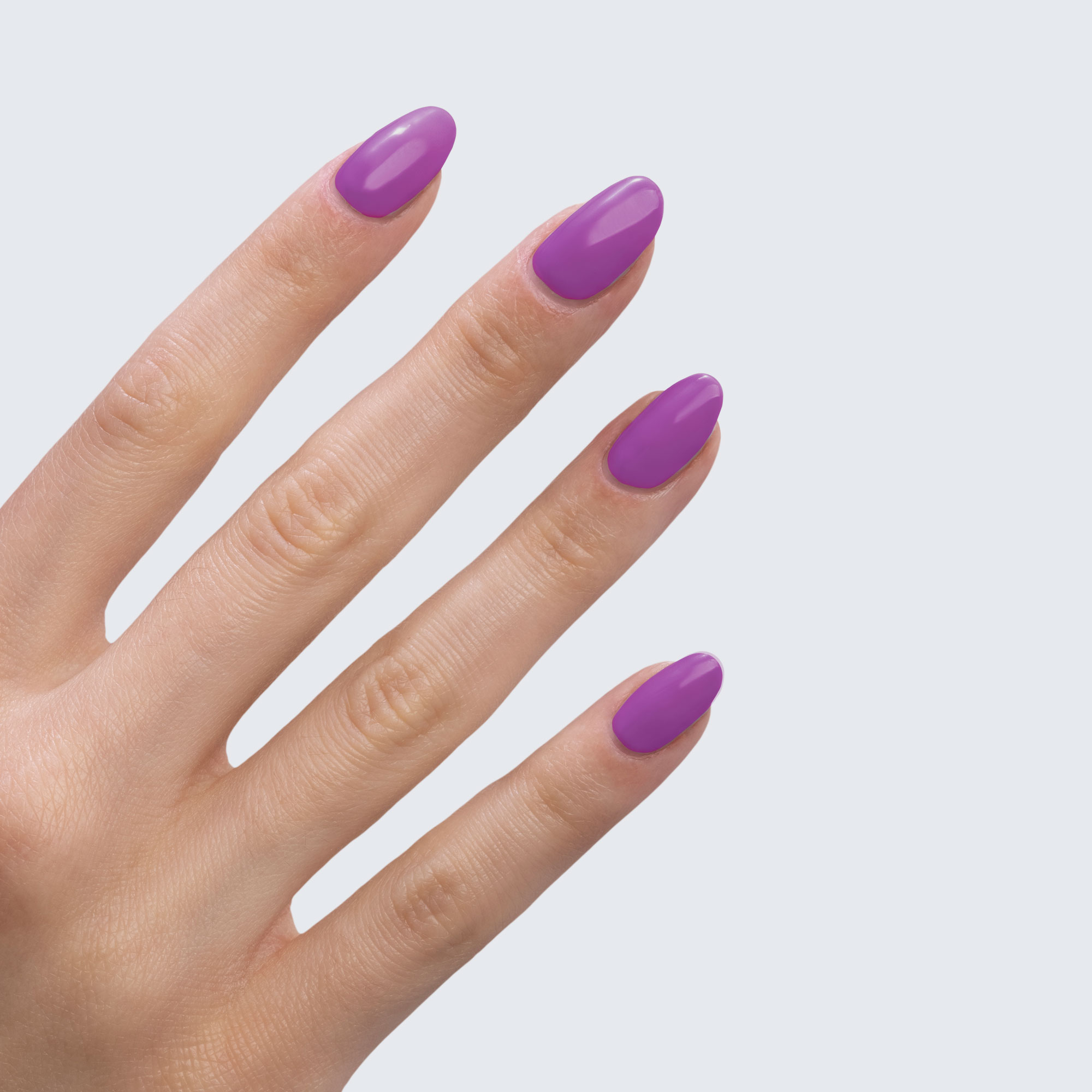 Neon purple. Light. Opaque. Cool undertone. Semi-gloss.